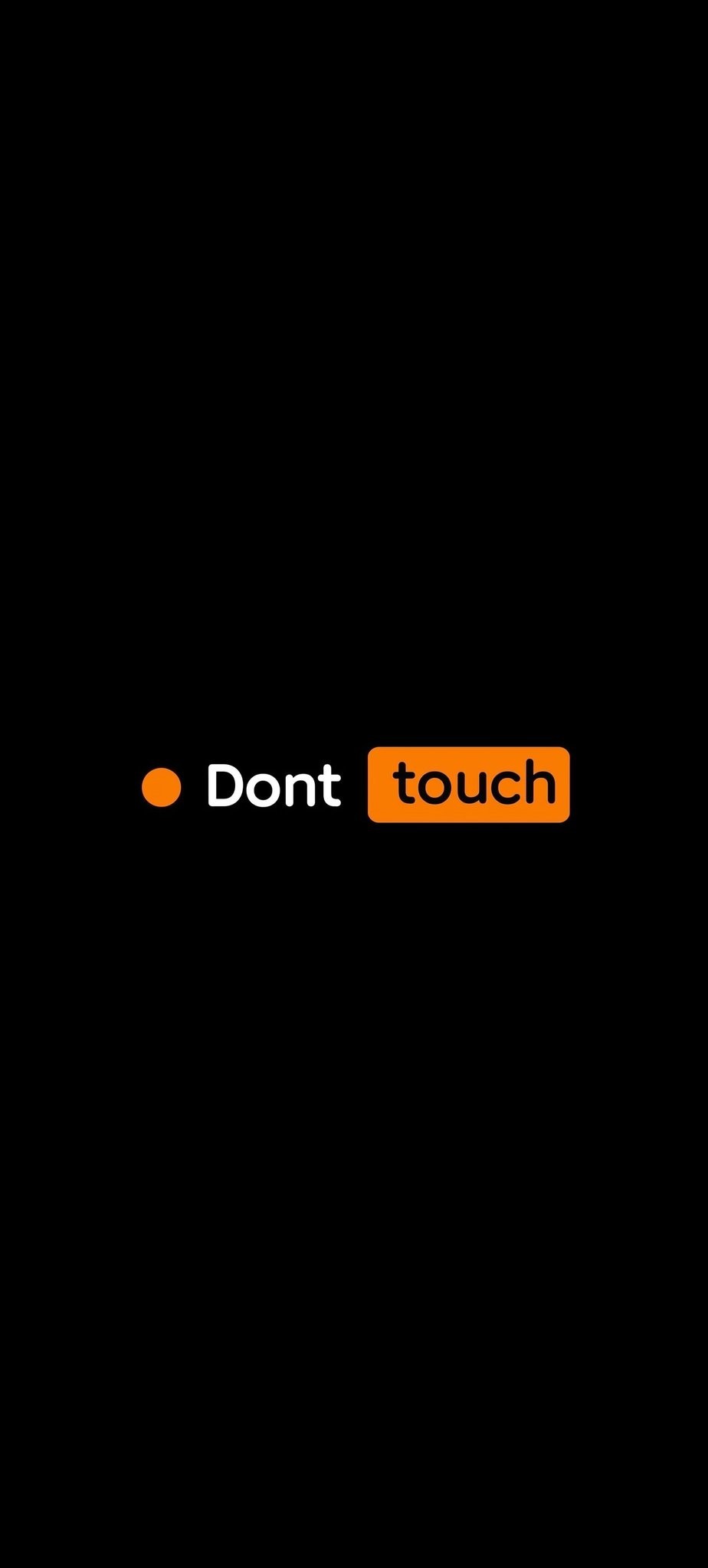 Keep hands off with this clean, bold warning 4K wallpaper: pure black background, bright orange circle on the left, simple white “Dont” text, and a striking orange rounded rectangle button with “touch” inside classic “don’t touch my phone” prank vibe. Perfect minimalist warning, funny lock screen troll, no touch aesthetic, dark mode humor for phone or desktop instantly recognizable, cheeky & guaranteed reactions. High resolution, free to download and enjoy.