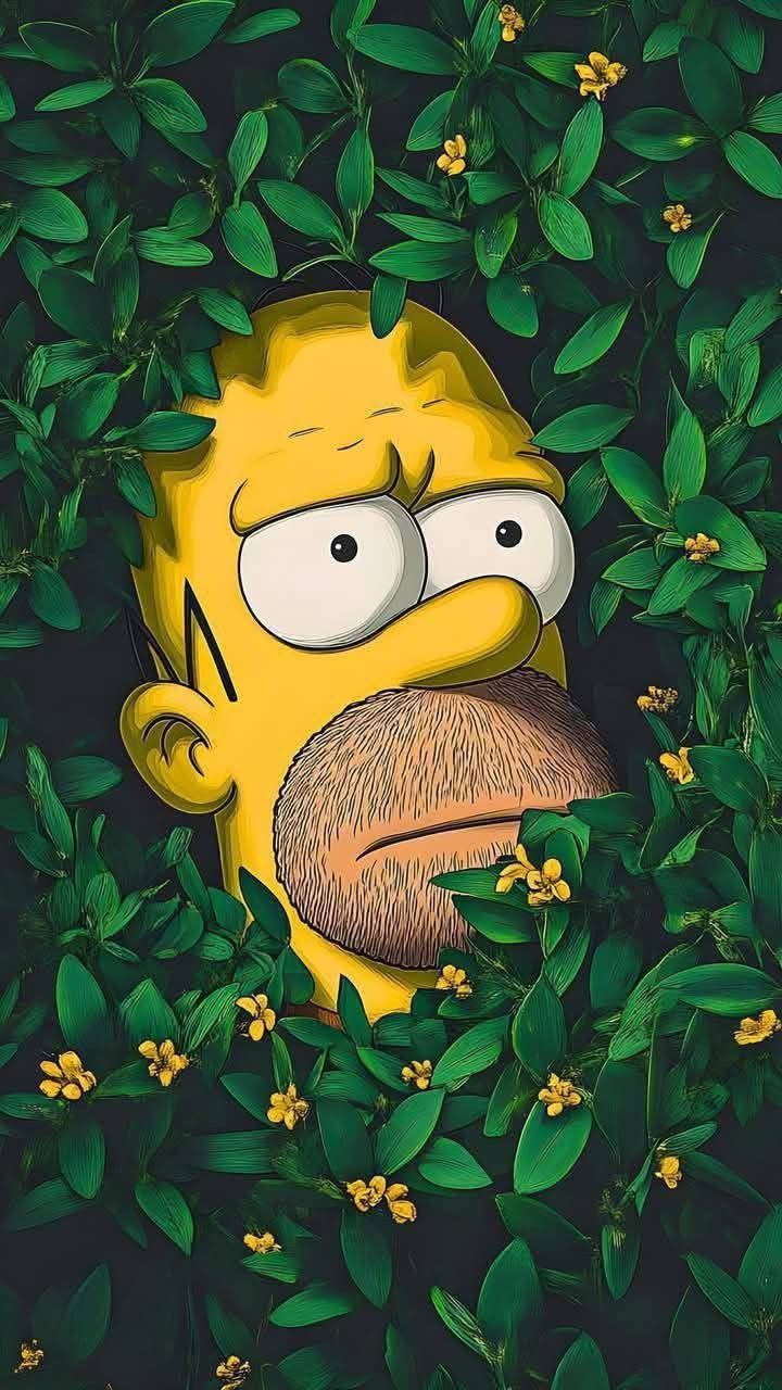 Turn your screen into instant comedy gold with this iconic 4K wallpaper: Homer Simpson’s giant yellow face peeking through dense green bushes with tiny yellow flowers, classic confused/sad expression, wide eyes and open mouth pure “hiding from responsibilities” energy on dark background. Perfect Simpsons fans, Homer meme, funny hiding face, relatable dad humor & viral aesthetic for phone lock screen or desktop hilarious, nostalgic & guaranteed laughs every unlock. High resolution, free to download and enjoy.