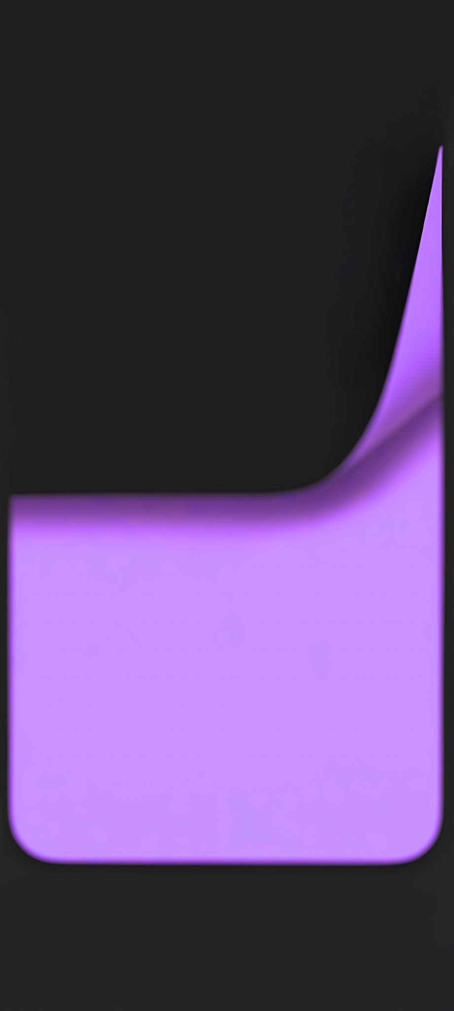 Title Suggestions: Abstract Paper Curl: Dark Background Revealing Purple Banner Minimalist Design: Rolled Corner Effect with Lavender Shape Digital Backdrop: Dark Grey with Rounded Purple Element Description Suggestion: This abstract and modern image showcases a curved, rounded rectangular shape in a soft lavender or purple hue, appearing to peel away from a dark, charcoal grey background. A subtle paper-curl effect is visible in the top right corner of the purple element, adding a sense of depth and interaction with the darker backdrop. The design is clean and minimalist, using sha