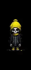 Cute Cartoon Skeleton in Yellow Beanie and Scarf