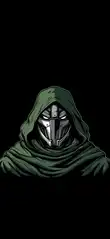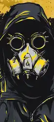 Stylized Gas Mask Figure in Hoodie with Yellow Accents