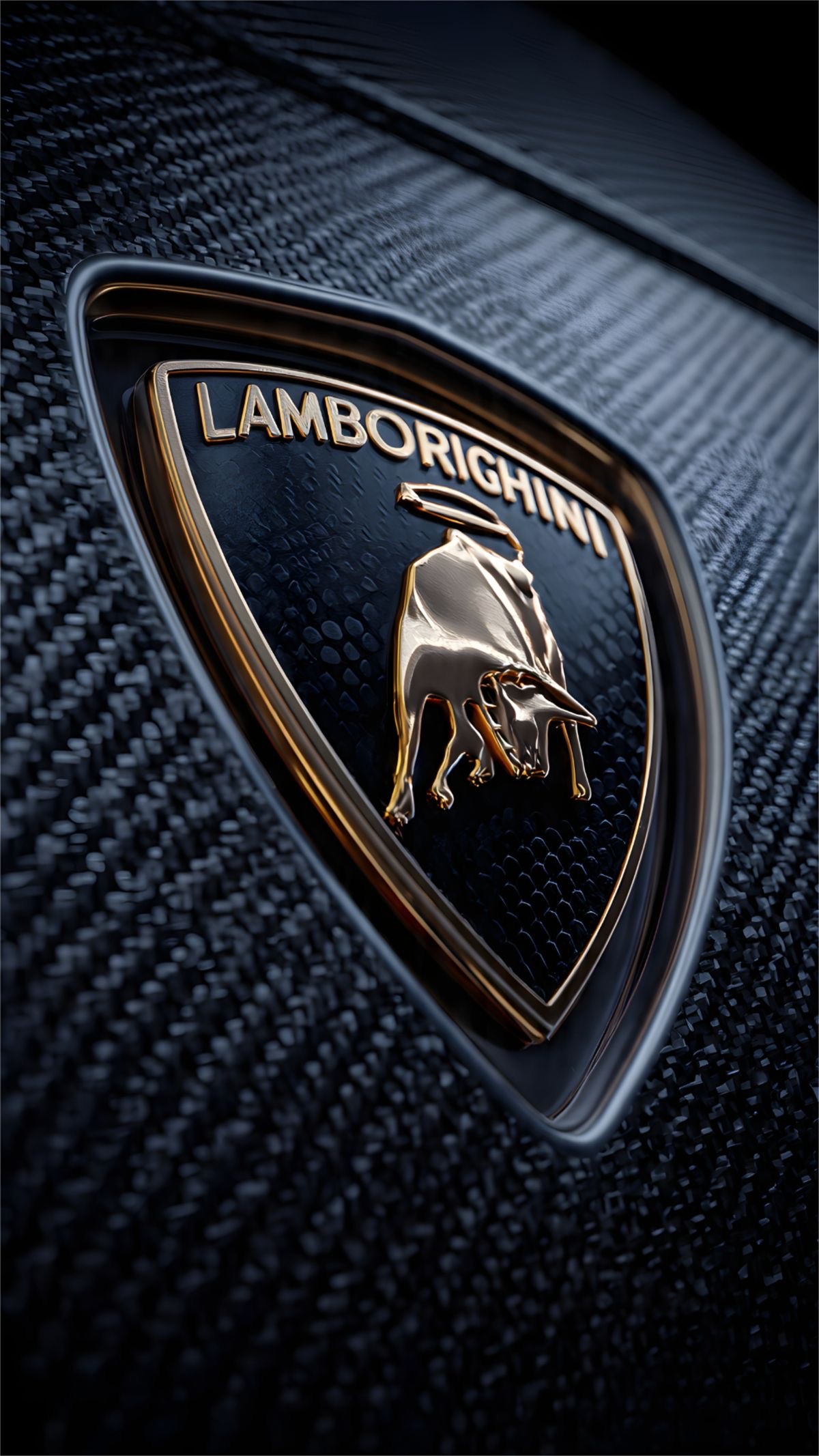Golden Lamborghini Bull Logo on Carbon Fiber Texture