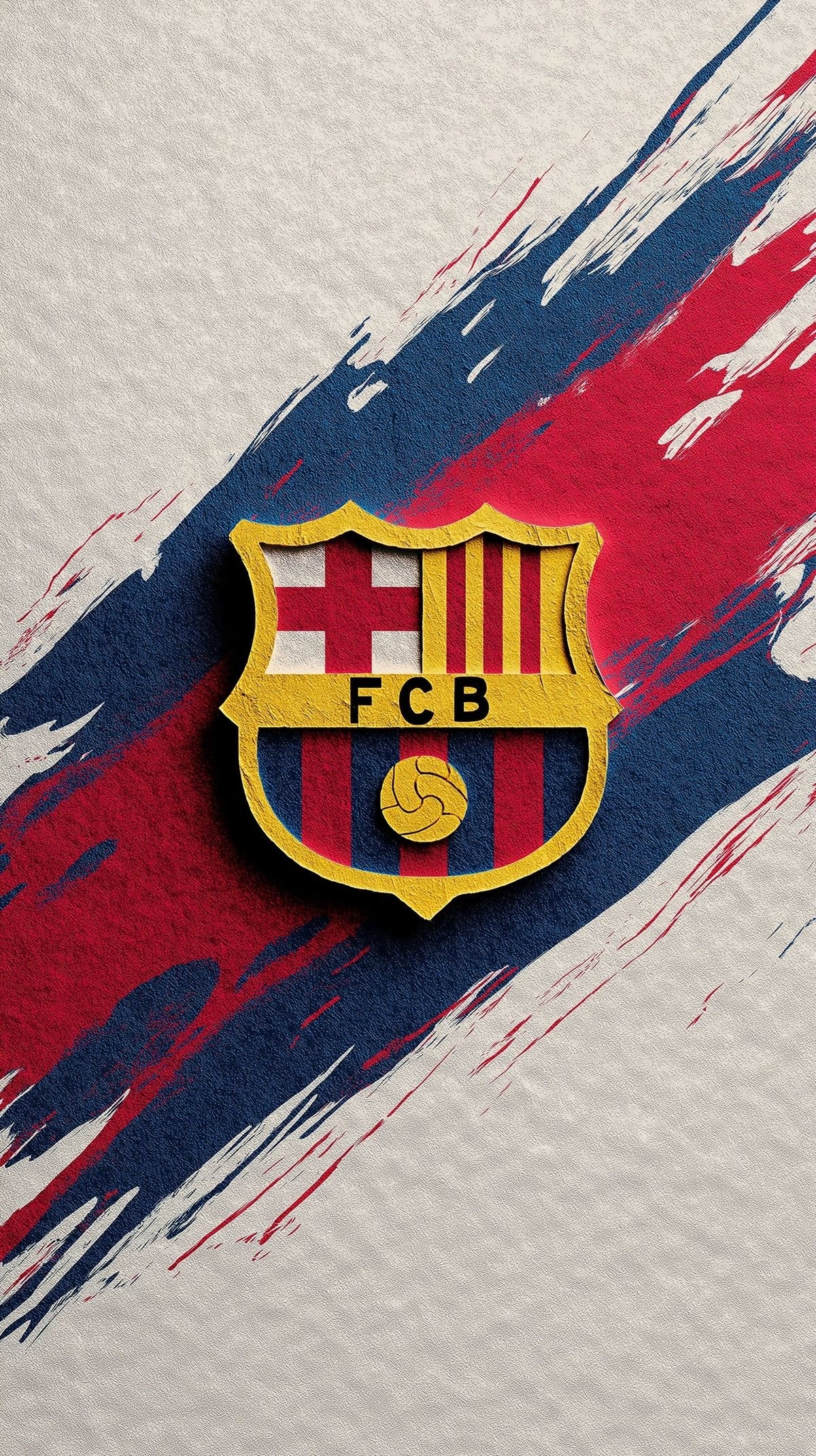 This vibrant and artistic image features the iconic FC Barcelona crest, rendered with a distinct golden outline and clear details of the Catalan flag, the St. George's cross, and the football. The emblem has a subtle three-dimensional appearance, making it stand out. The logo is set against a dynamic background of bold red and blue paint strokes or abstract textures, which evoke a sense of energy and movement, perfectly representing the club's famous colors. The overall aesthetic is one of tradition, passion, and artistic flair. This image is perfect for FC Barcelona fans, soccer (football) enthusiasts, sports merchandise, fan art, and themes of loyalty, team spirit, and iconic sports brands. Ideal for social media, sports blogs, fan communities, or any content celebrating one of the world's most beloved football clubs.