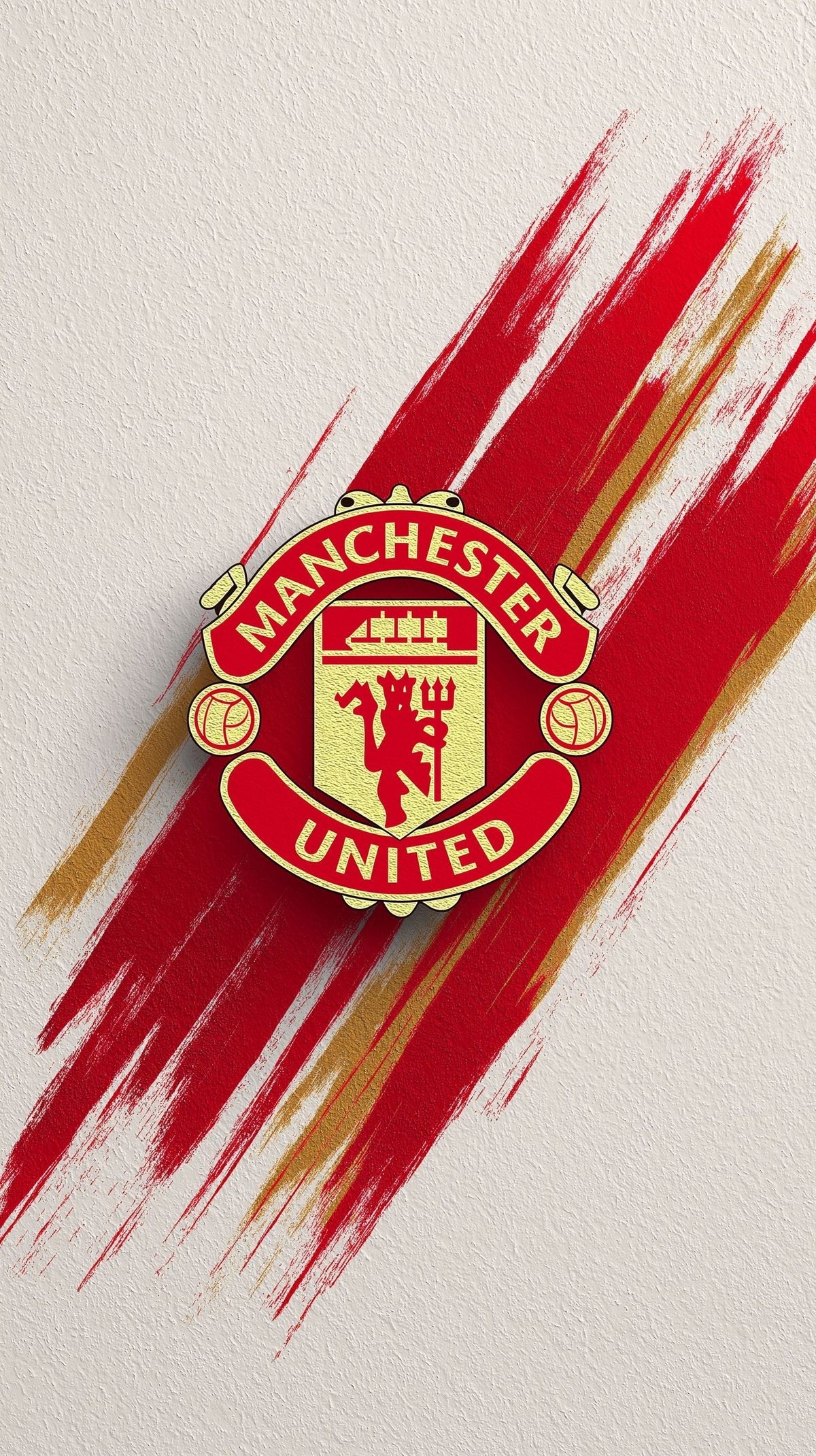 This vibrant and artistic image features the iconic Manchester United FC crest, rendered with a distinct golden outline and clear details of the ship, devil, and footballs. The emblem has a subtle three-dimensional appearance, making it stand out prominently. The logo is set against a dynamic background of bold red and gold paint strokes or abstract textures, which evoke a sense of energy and movement, perfectly representing the club's famous colors. The overall aesthetic is one of tradition, passion, and artistic flair. This image is perfect for Manchester United fans, soccer (football) enthusiasts, sports merchandise, fan art, and themes of loyalty, team spirit, and iconic sports brands. Ideal for social media, sports blogs, fan communities, or any content celebrating one of the world's most renowned football clubs.